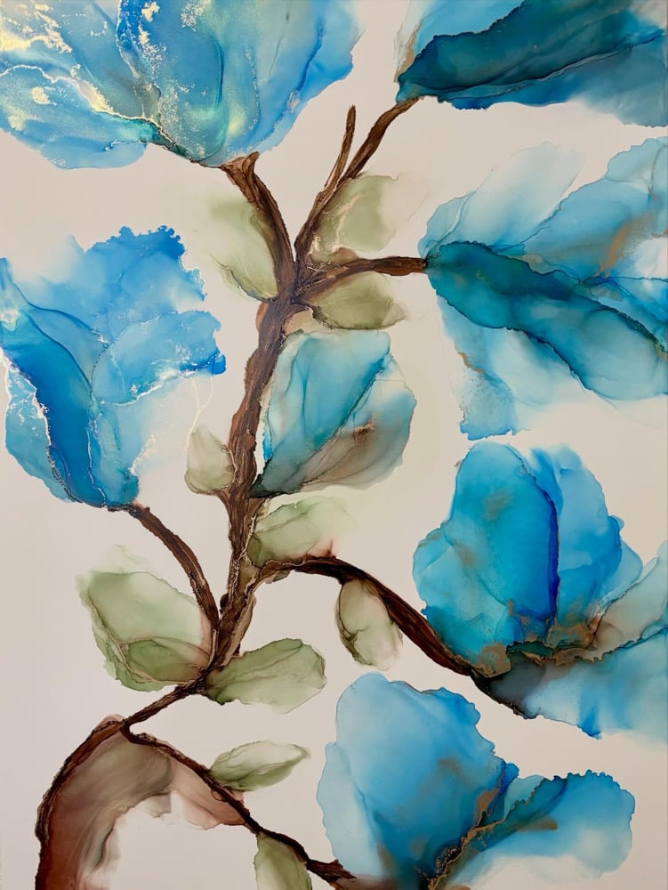 Inspired by nature and botanical elements, this piece balances calm, airy color and metallics that catch the light just right. The result is a serene, contemporary piece that brings a sense of quiet beauty to any space.